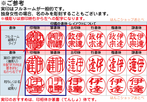 印影パターン見本 安心の10年保証付です 書体についての詳しいご説明は書体についてをご覧下さい。