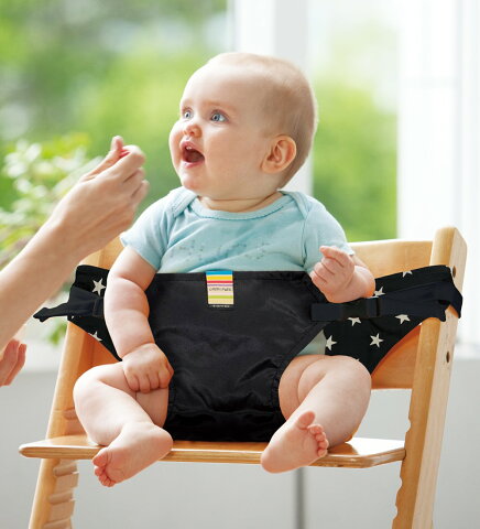 ベビーチェアのないレストランや里帰りの時に便利! ママのウエストに取り付ければ手放しで一緒にお食事が出来るのでみんなご機嫌♪